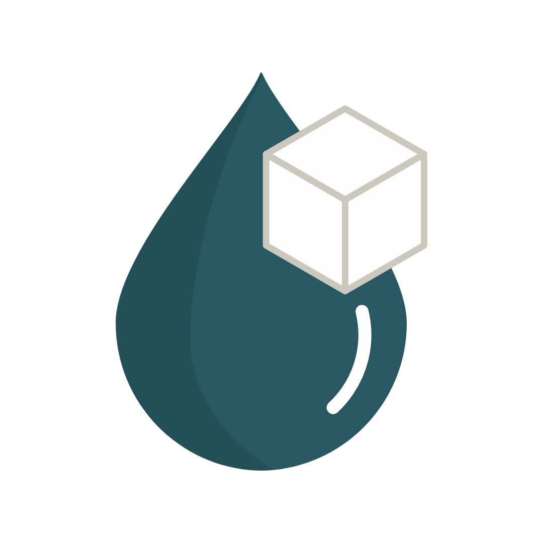 Eine vereinfachte Darstellug eines Tropfens in türkiser Farbe und eines Zuckerwürfels.